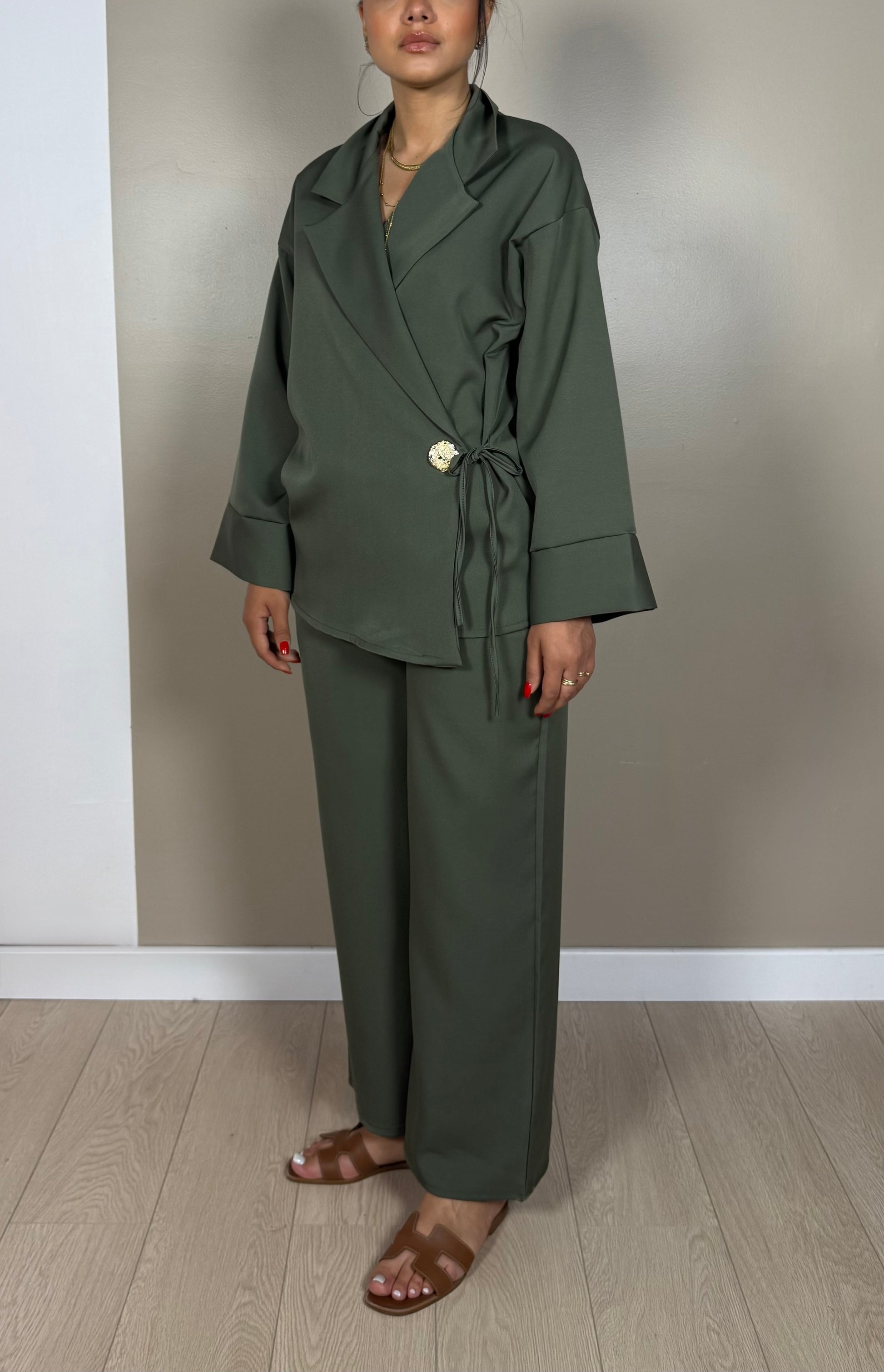 Ensemble blazer pantalon ZOE à broche doré